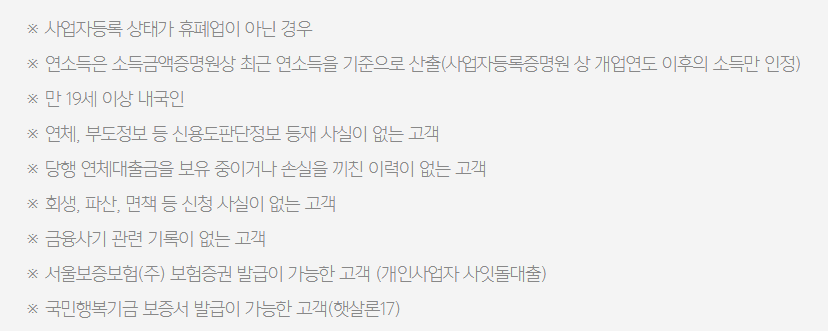 사업기간이 3개월 이상 경과한 개인사업자로 하단의 조건에 모두 해당되는 자