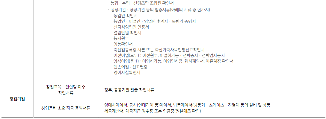 자영업자와 농림어업인의 준비서류는 주민등록등본과 임차계약서가 필요합니다. 상세 내용은 하단의 표를 참고 해주시기 바랍니다.