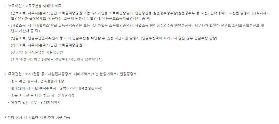 마지막으로 대출 신청시 필요한 준비 서류 입니다. 필요서류를 잘 참고하시고 미리 준비해주시기 바랍니다.