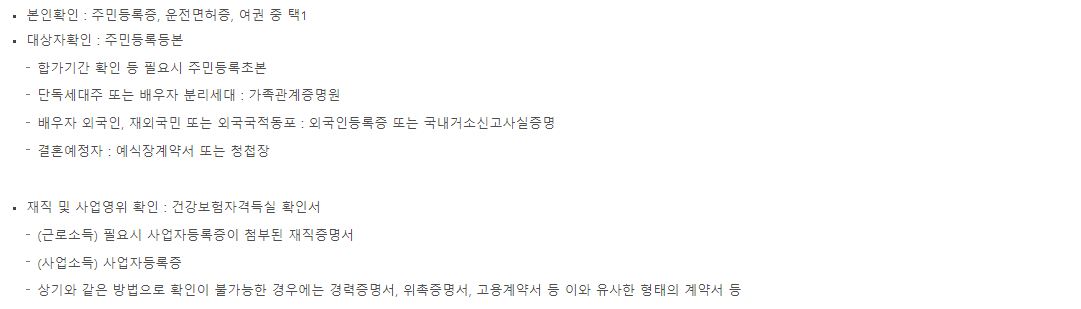 - 만 30세 미만 미혼세대주는 댙출 제외. 단, 직계존속 중 1인 이상과 동일세대를 구성하고 주민등록등본상 부양기간(합가일 기준)이 계속해서 6개월 이상인 경우 가능