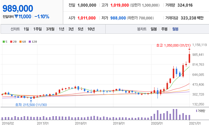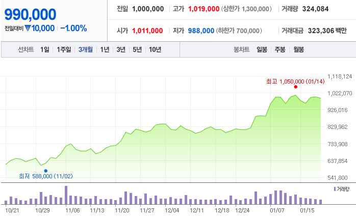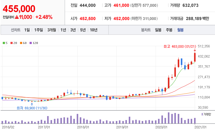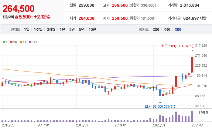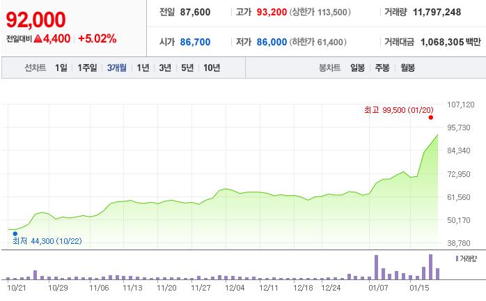 애플카의 생산설로 기아차로 역대 최고가를 갈아치우고 있습니다. 아직 결정된 공식적 입장이 없다고 말하고 있지만 개인투자자들이 몰리고 있습니다. 하지만 위와 같은 이유 외에도 친환경 전기차가 전세계적으로 시작되고 있어 자동차산업이 지속적으로 기대되는 종목입니다.
