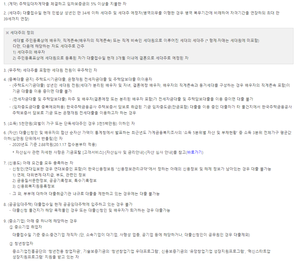 중소기업 청년 전세 대출 대상 안내