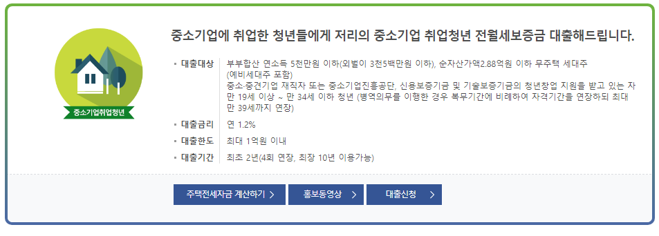 중소기업 취업청년 전월세 보증금대출 금리 안내