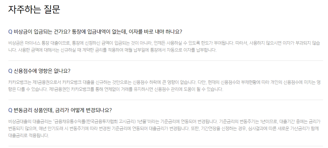 지금까지 1금융권으로 잘 알려져 있는 카카오뱅크 비상금대출 상품에 대해서 알아보았습니다. 급전이 필요해서 대출을 받을 수 있지만, 연체를 하여 신용도를 하락시키는 일은 꼭 피하시여 올바른 금융생활을 하시길 바랍니다.