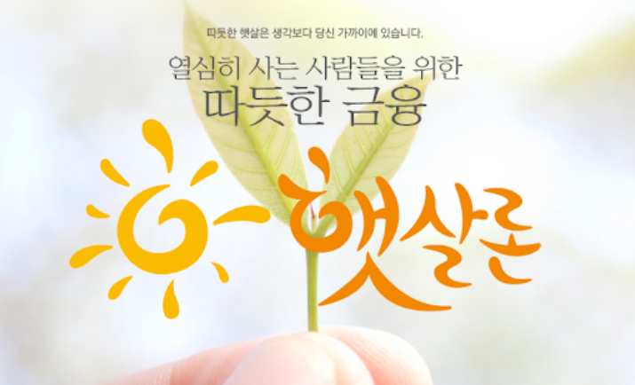 햇살론에 대한 이미지가 고금리에 안좋은 대부업이라고 생각하시는 분들이 많으셨을텐데요. 햇살론은 서민을 위한 대출이라는 이미지로 대부업 등에서 연 20~27% 내외 고금리를 부담해야 하는 저신용/저소득 서민에게 연 6~8%대의 저금리로 대출 입니다.
