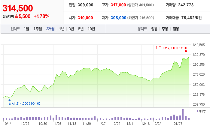 애플카 개발 및 생산에 관하여 현대차와 협력한다는 내용 발표로 관심이 집중되는 종목