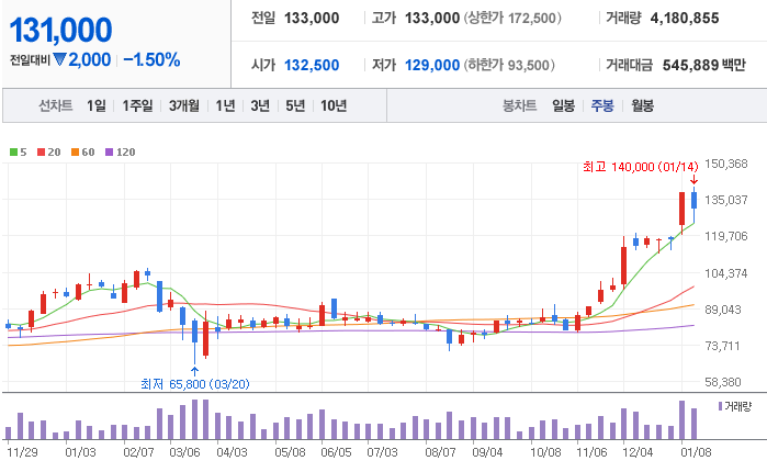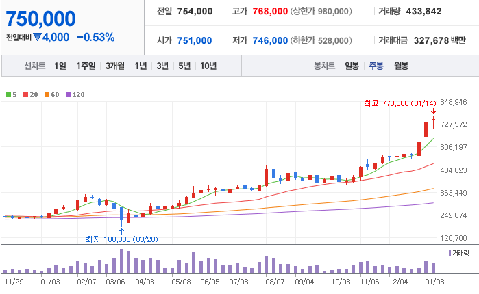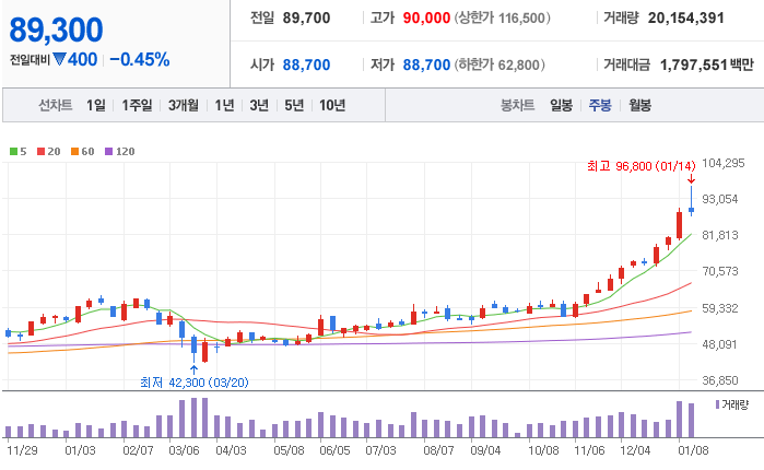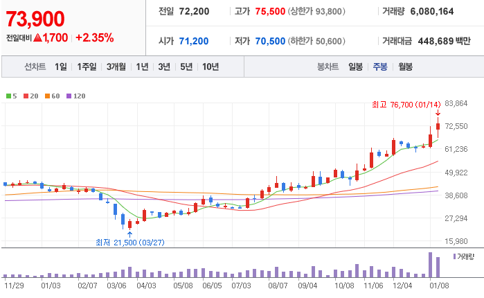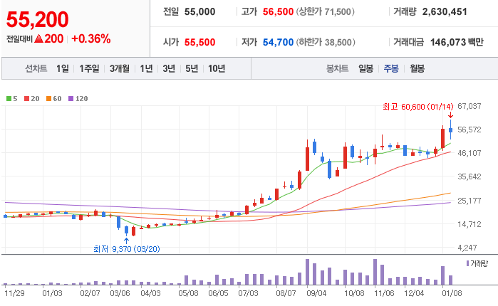 대부분의 사람들이 인정하는 종목으로 가장 많은 증권사에서 추천하는 종목 입니다. 코로나19로 인해 억눌린 수요가 폭발하면서 스마트폰 및 가전기기의 사업이 상승세를 보이면서 더욱 기대가 되는 종목 입니다.