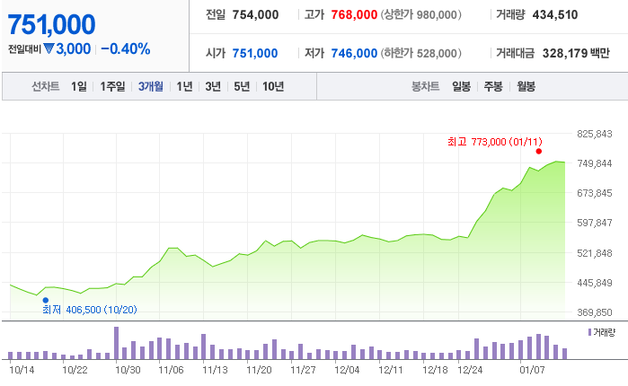 애플카 개발 및 생산 발표에 따른 협력업체 관련주로 현대모비스가 포함되어 있어 주목받는 종목입니다.